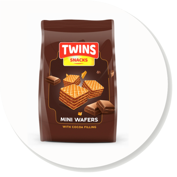 Ingredients: Wafer product filled with cocoa cream – Ingredients: 75% cocoa cream – powdered sugar, vegetable fat (palm oil), permeate whey powder, cocoa powder (6%) blender: soy lecithin